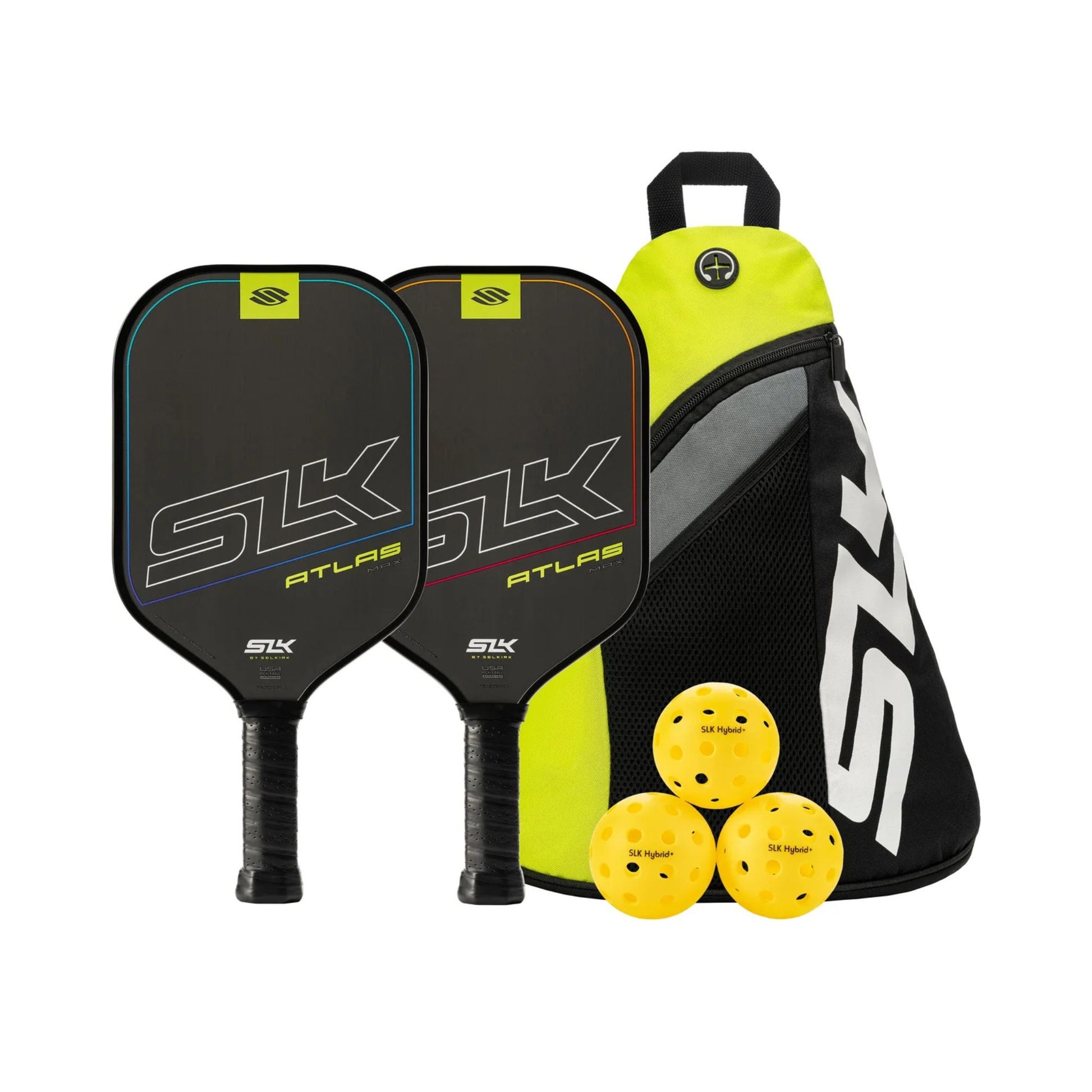 Das Set besteht aus 2 Schlägern, 3 Bällen und einer passenden Tragetasche und beinhaltet somit alles notwendige für den schnellen Einstieg in den Pickleball Sport.